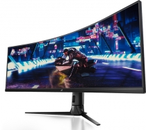 ROG Strix XG49VQ - В ультраширокоформатному ігровому моніторі ROG Strix XG49VQ використовується вигнута 49-дюймова панель із частотою оновлення 144 Гц, роздільною здатністю 3840x1080 та співвідношенням сторін 32:9.